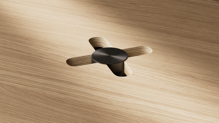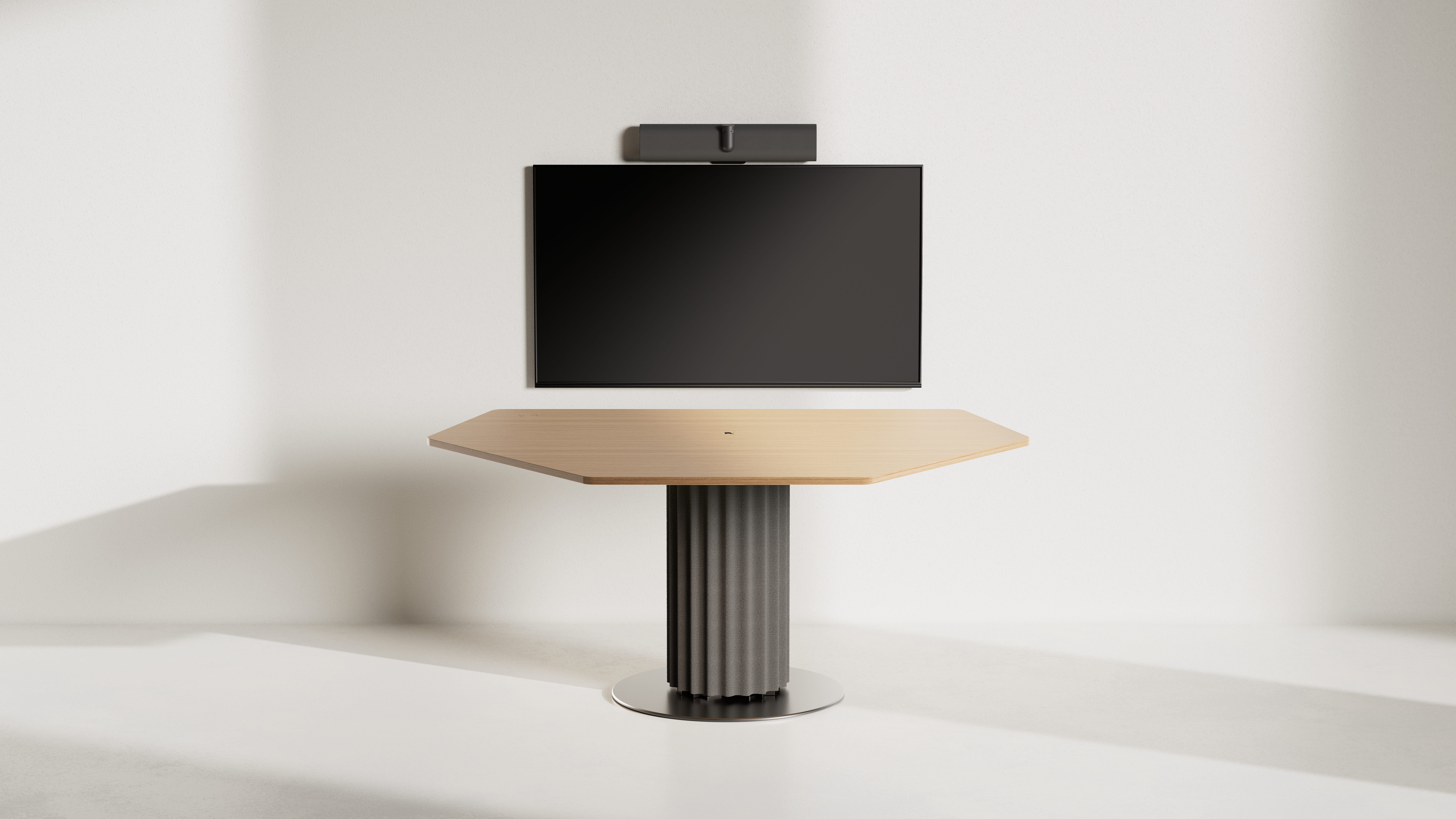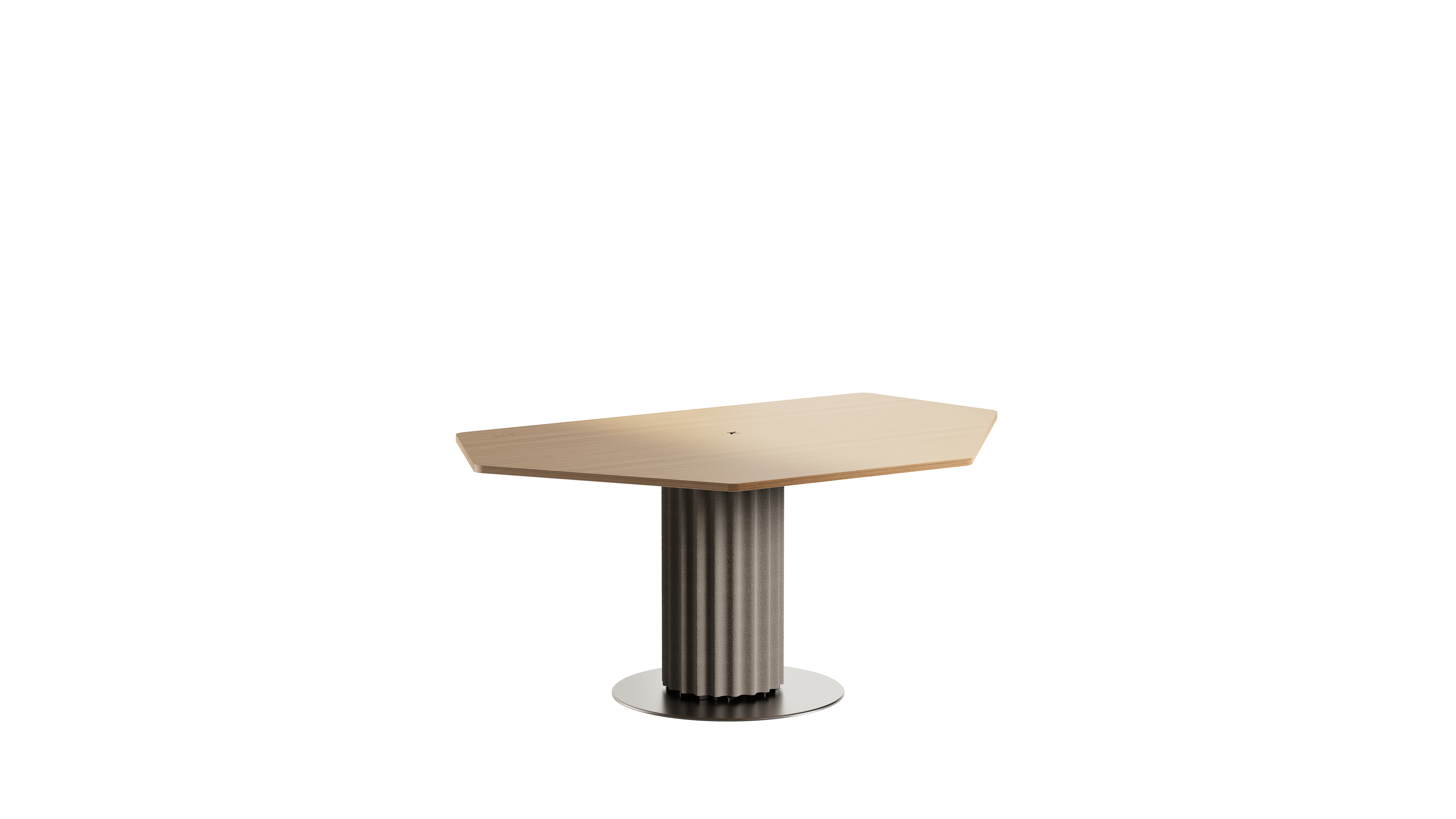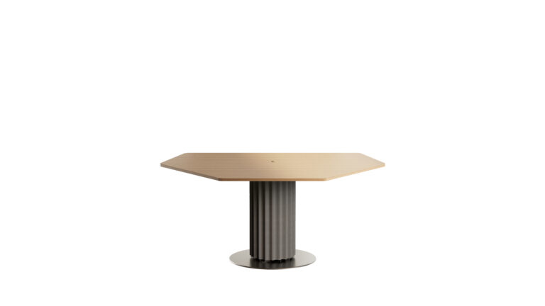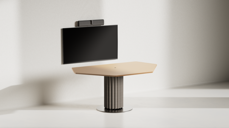 Connex Hybrid Meeting ensures a seamless and sophisticated experience for both in-room and digital participants. Its sculptural column base, wrapped in acoustic felt panels, cleverly conceals cables and IT components for easy installation. The tabletop discreetly integrates mobile charging and various cable connections. Elegance and functionality in perfect connection. Available in 3 sizes.